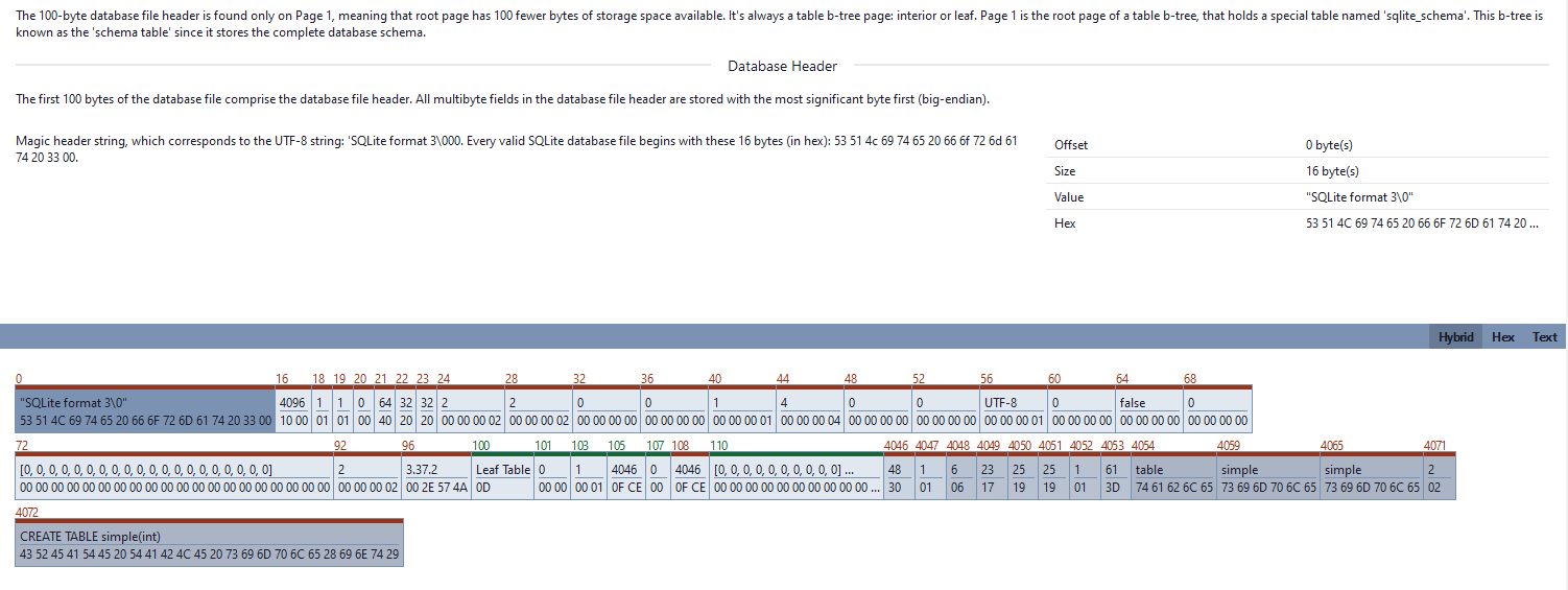 | 0-15 | 16 | 文件头字符串: “SQLite format 3\000” |